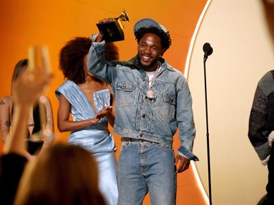 Kendrick Lamar agradece el gramófono dorado tras recibir uno de los premios Grammy en una edición pa