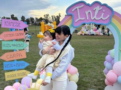 La pequeña Inti nació el 14 de septiembre de 2023, pero los festejos comenzaron desde ahora. La artista colgó varias fotografías en sus historias de Instagram donde posa junto a la entrada del "Parque Inti" que contenía flechas que indicaban las áreas de kermés: algodón de azúcar, plaza para bebés, carpa, la "vuelta al mundo", una mini rueda de la fortuna y un "parque inflable".